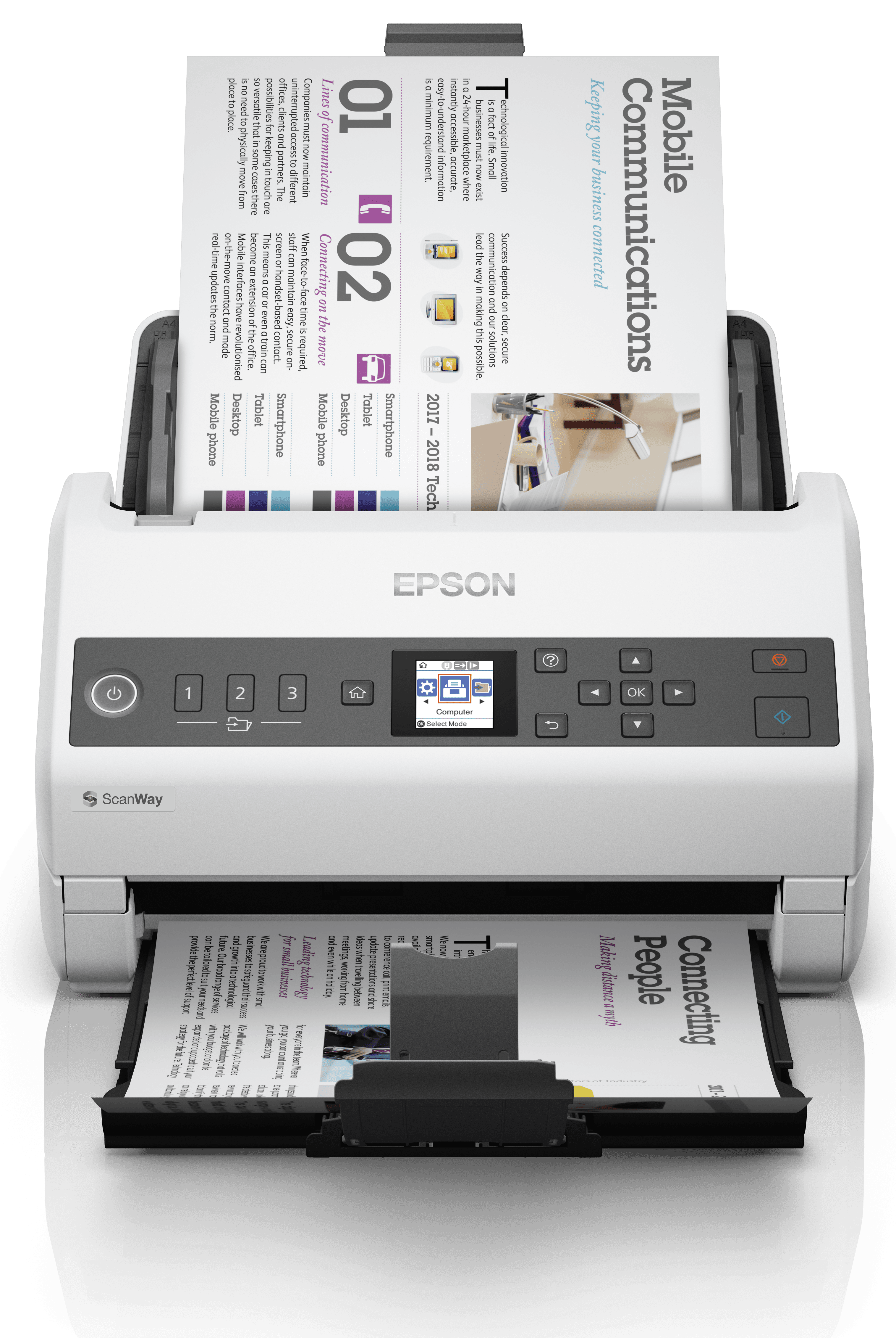 • Standalone network scanning Release the potential of a connected workplace • File sharing One touch scan to different destinations • Reliable paper handling Take control with ultra-sonic sensors and paper protection • Speed with control Use slow mode or scan documents with speeds of up to 40 ppm (80ipm) • Built-in display Easy to use 1.44 inch colour LCD