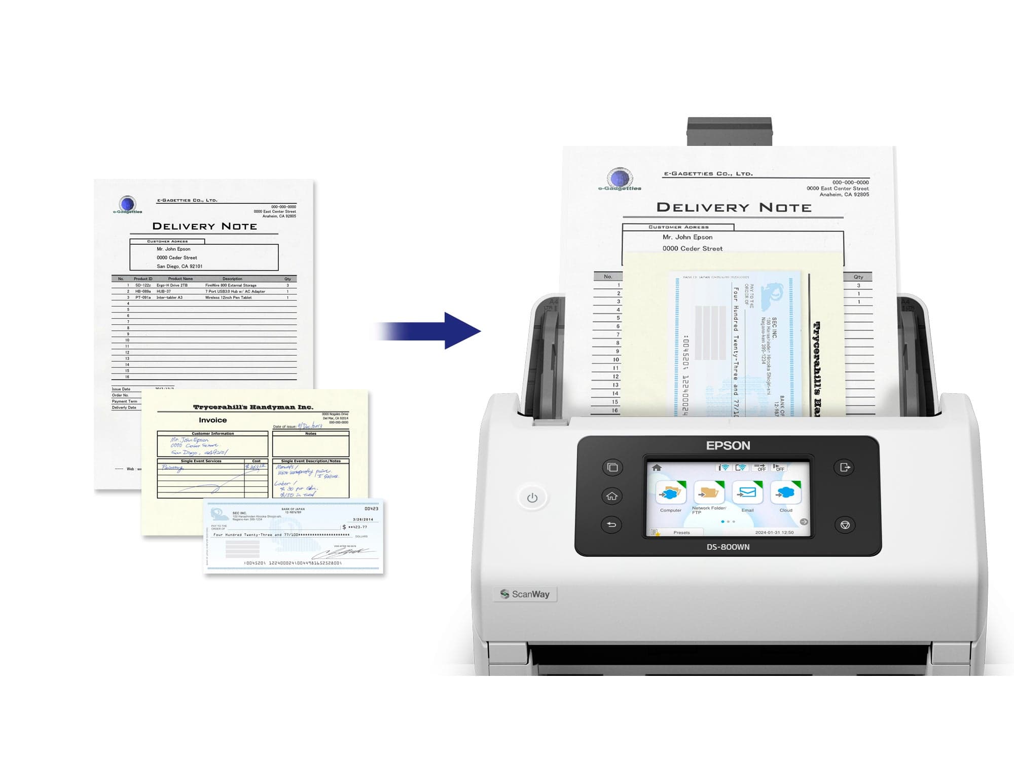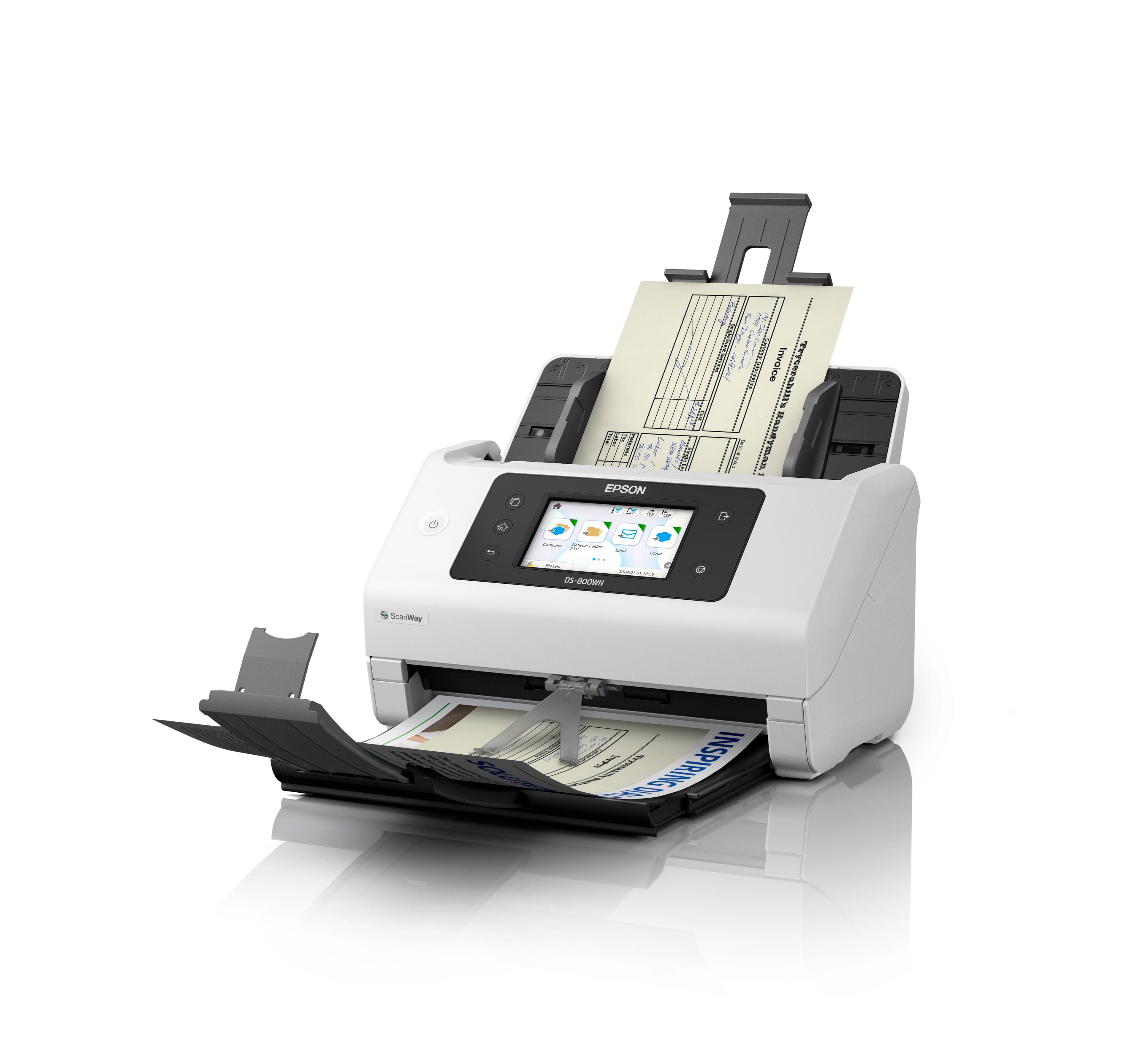 • Open platform Full Integration with ISV or Epson software solutions • High speed 50ppm/100ipm, 8,000 pages daily duty cycle • Network connectivity USB 3.2 Gen1, Wi-Fi, Wi-Fi Direct, LAN • User-friendly Customisable LCD touchscreen, scan directly - no PC required • Efficient Low power consumption