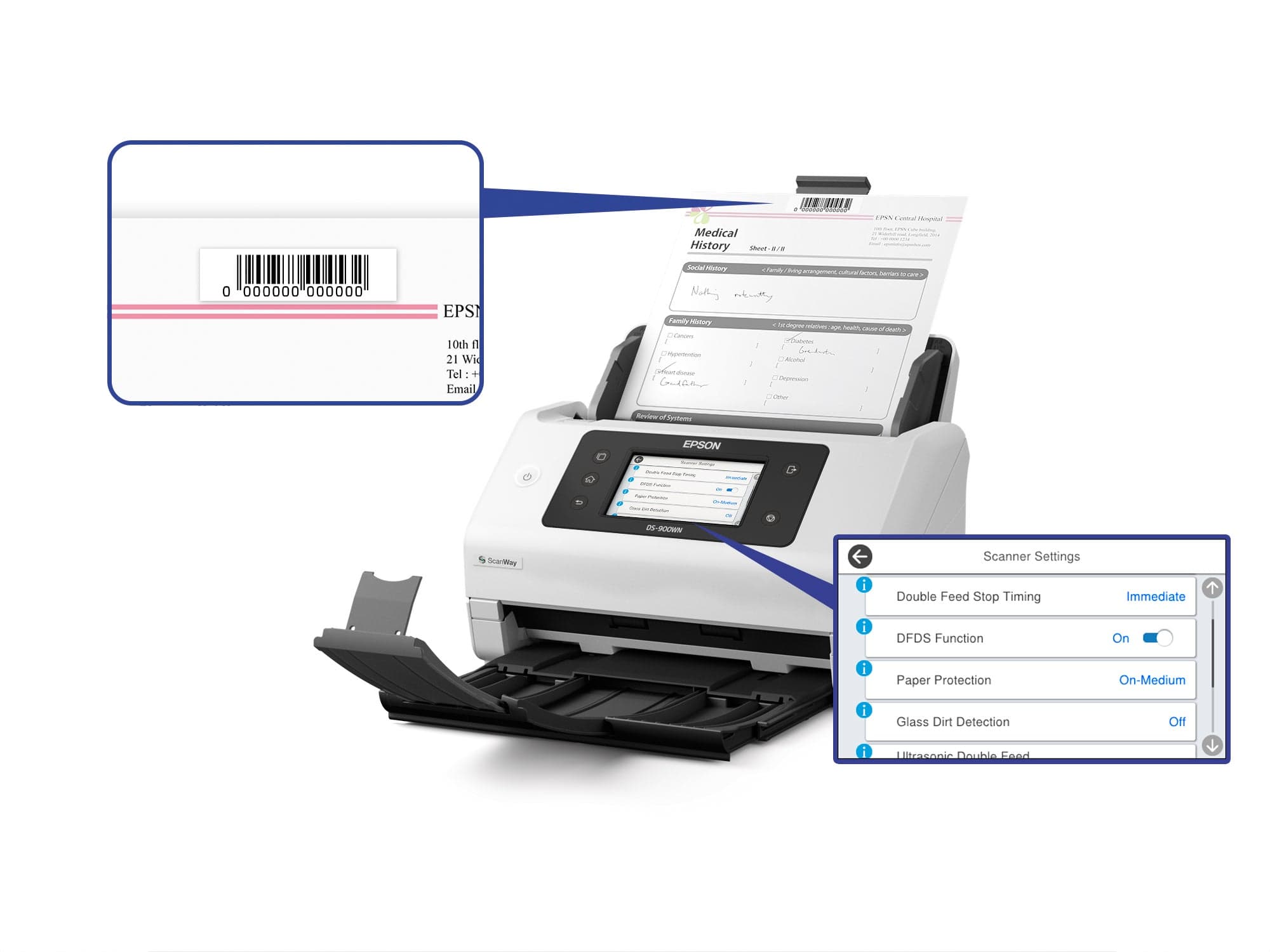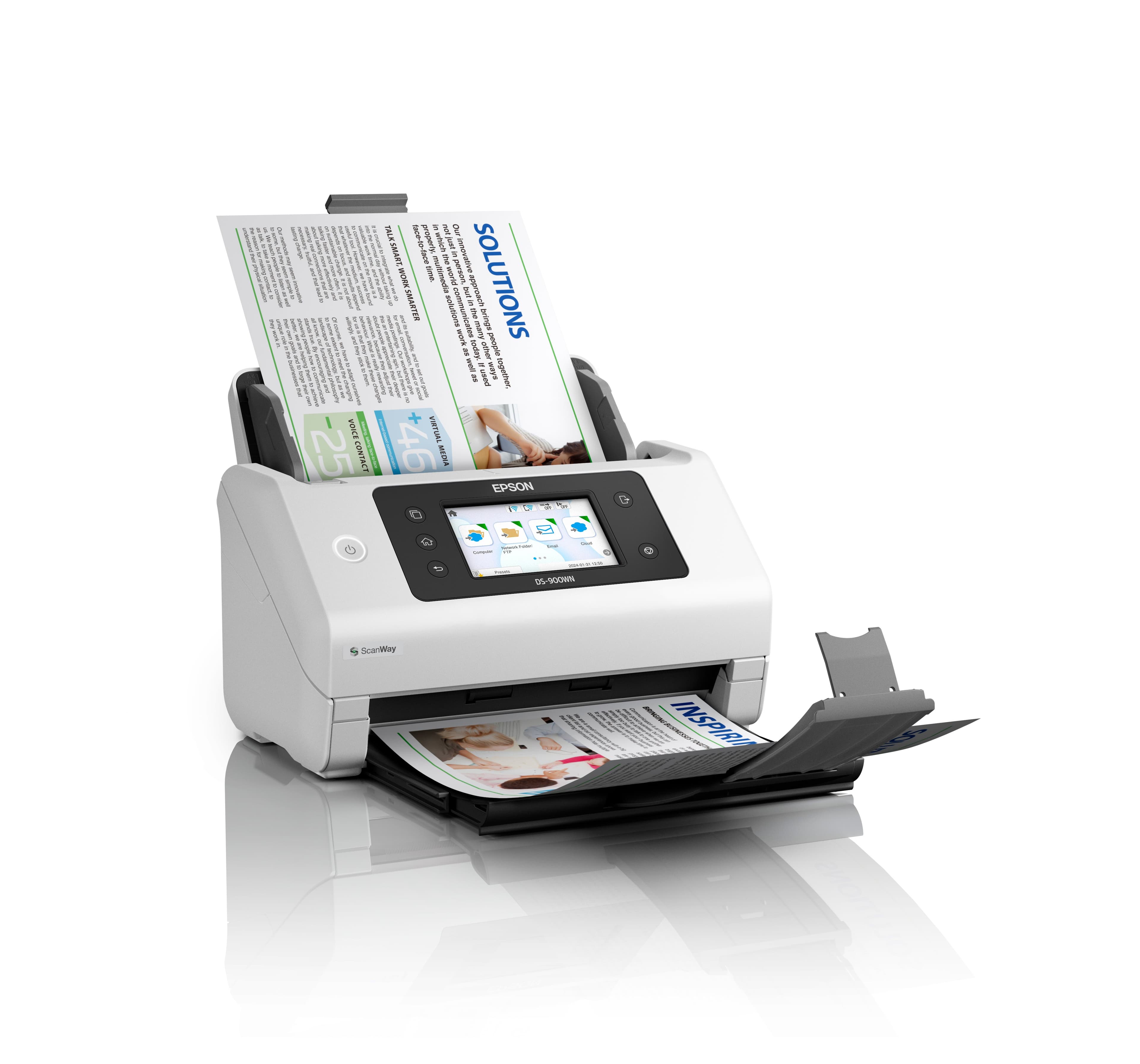 • Open platform Full Integration with ISV or Epson software solutions • High speed 70ppm/140ipm, 11,000 pages daily duty cycle, 100-sheet ADF • Network connectivity USB 3.2 Gen1, Wi-Fi, Wi-Fi Direct, LAN • User-friendly Customisable LCD touchscreen, scan directly - no PC required • Efficient Low power consumption